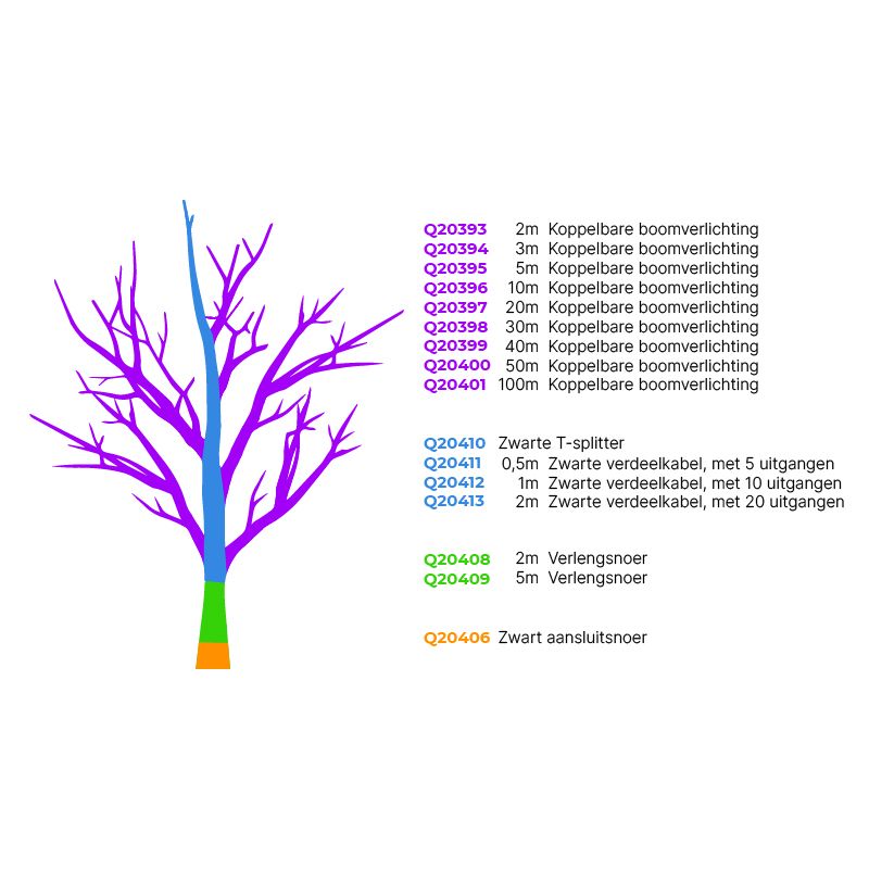 To świąteczne oświetlenie, które można podłączyć, nadaje się również do użytku na drzewie przez cały rok. Pozwala to na łatwe włączanie i wyłączanie oświetlenia o każdej porze roku bez konieczności corocznego wspinania się na drzewo lub krzew! Ten przewód można odłączyć co 10 metrów. To oświetlenie na drzewo jest dostarczane z przewodem przyłączeniowym w zestawie.