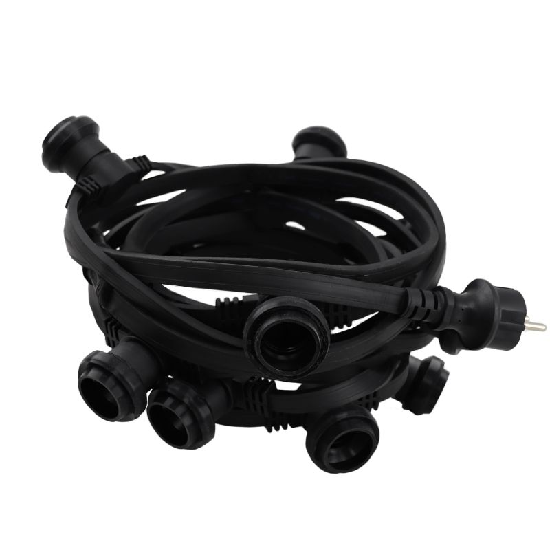 Girlandy ogrodowe są profesjonalnej jakości. Przewód ma mocną gumę w kolorze czarnym, a na końcu posiada wtyczkę, którą można wpiąć bezpośrednio do gniazdka elektrycznego. Sznur zawiera końcówki i pierścienie uszczelniające na gniazdo - jest gotowy do użycia!