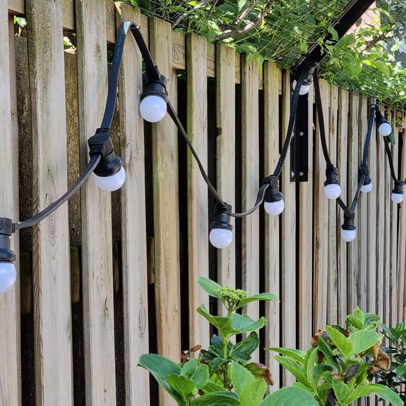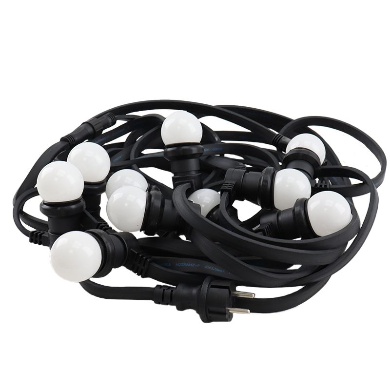 Girlandy ogrodowe są profesjonalnej jakości. Przewód ma mocną gumę w kolorze czarnym, a na końcu posiada wtyczkę, którą można wpiąć bezpośrednio do gniazdka elektrycznego. Sznur zawiera końcówki i pierścienie uszczelniające na gniazdo - jest gotowy do użycia!
