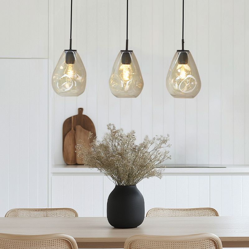 Design lampa wiszaca Evito ma kolor bursztyn i wykonana ze szkla. Bursztynowa lampa wiszaca jest dostarczana z wylaczeniem pasujacych zródel swiatla. Ta lampa wymaga 3 zródel swiatla z oprawkami E27. Maksymalna moc zródel swiatla nie moze przekraczac 40 watów na lampe.