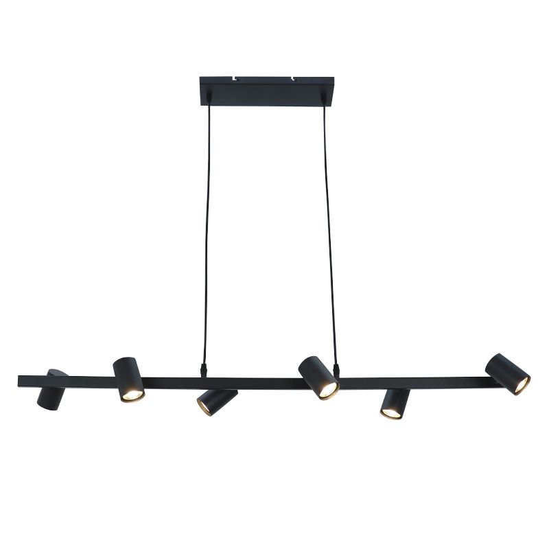 Nowoczesna lampa wisząca Carlos ma kolor czarny i wykonana z aluminium. Czarna lampa wisząca jest dostarczana z wyłączeniem pasujących źródeł światła. Ta lampa wymaga 6 źródeł światła z oprawkami GU10. Maksymalna moc źródeł światła nie może przekraczać 5 watów na lampę.