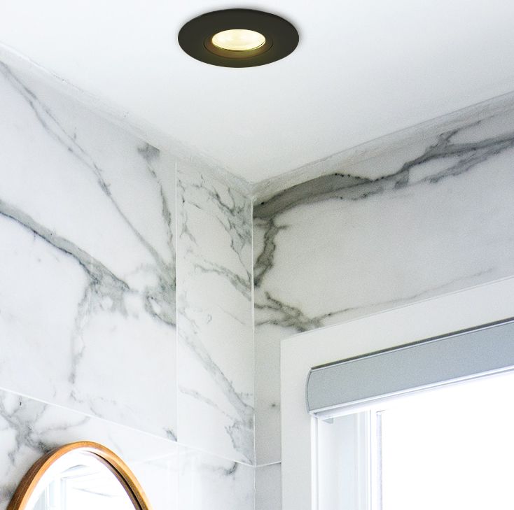 Czarna aluminiowa oprawa sufitowa wpuszczana posiada stopień ochrony IP44 (odporność na wilgoć). Dzięki temu lampa nadaje się do miejsc, do których może dotrzeć woda i wilgoć. Dlatego lampa ta nadaje się do łazienek lub innych wilgotnych pomieszczeń.