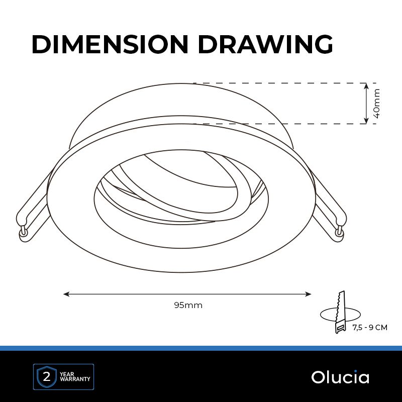 • Wysokość montażu: 4 cm i wielkość cięcia: 7,5 cm