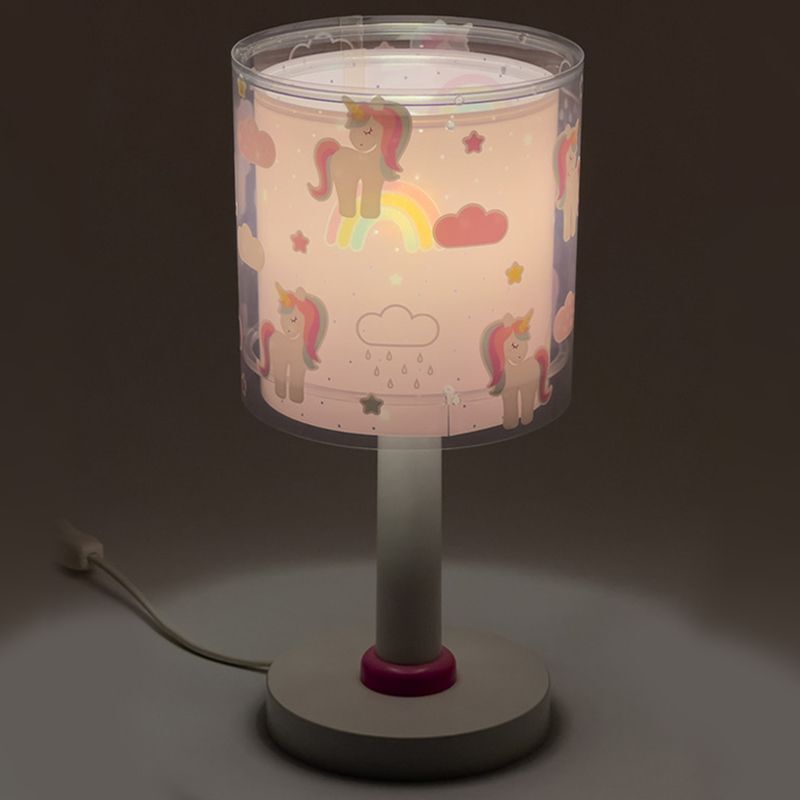 Różowa lampa stołowa dla dzieci plastikowa, Unicorn, posiada następujące cechy:
